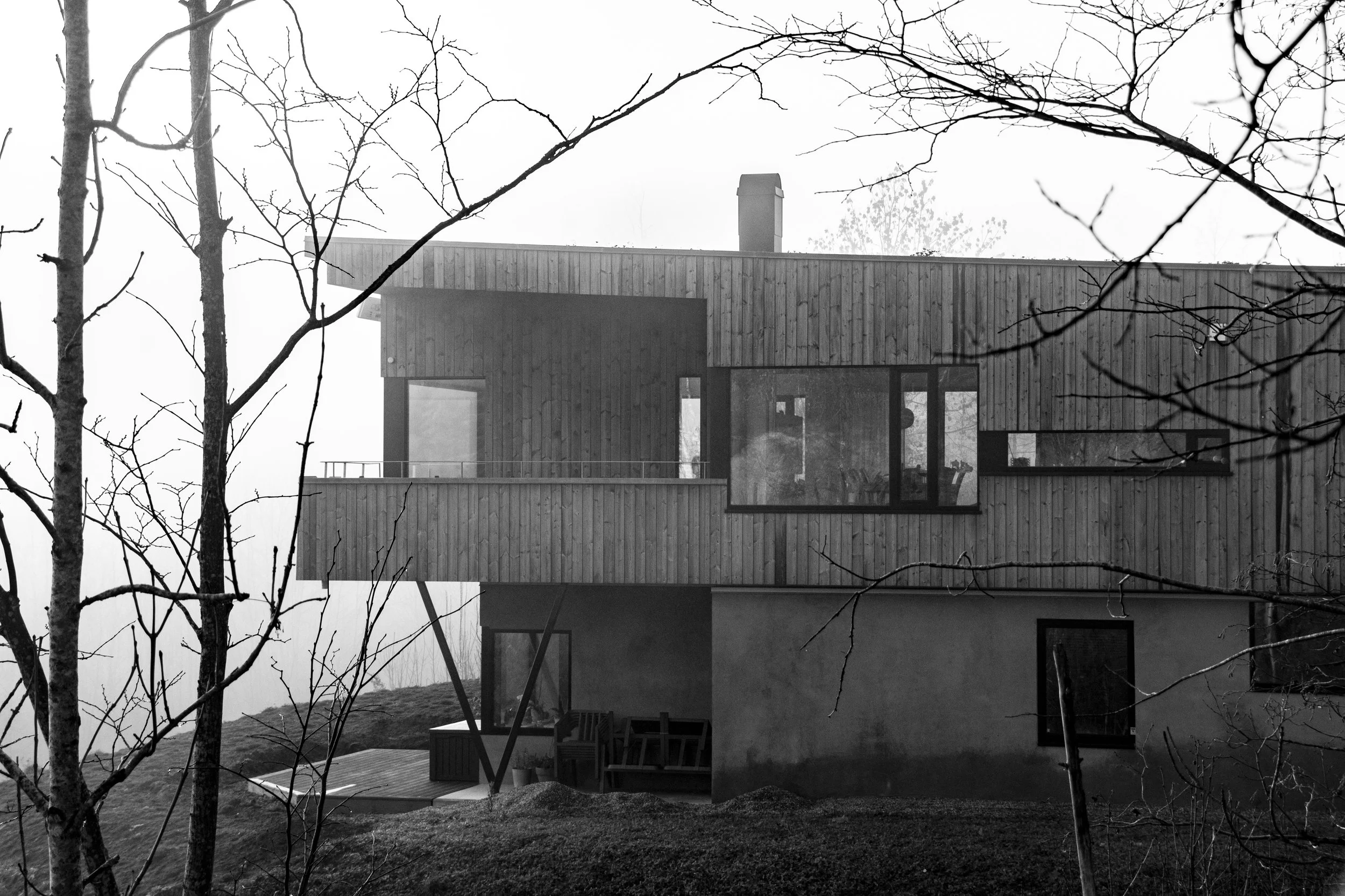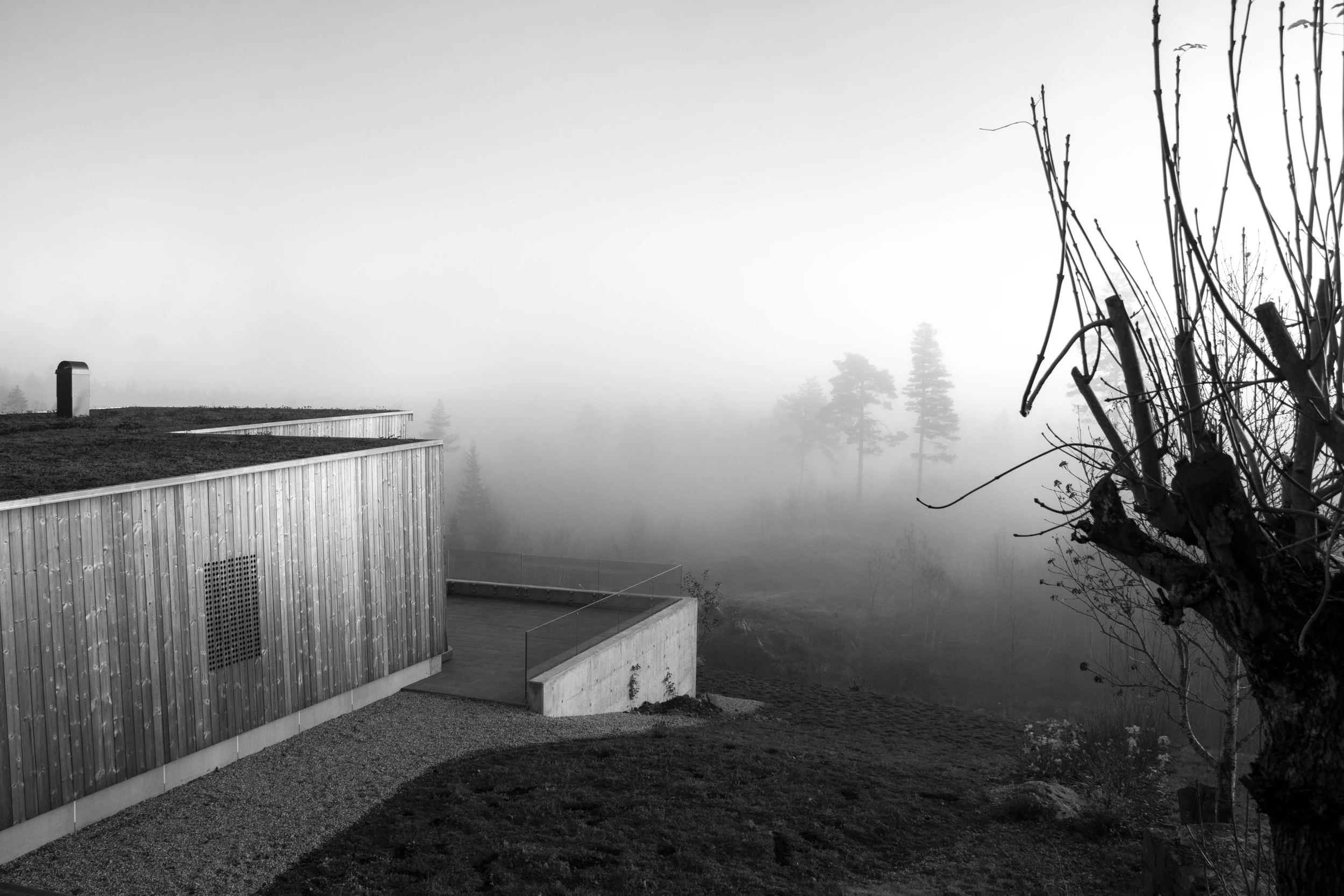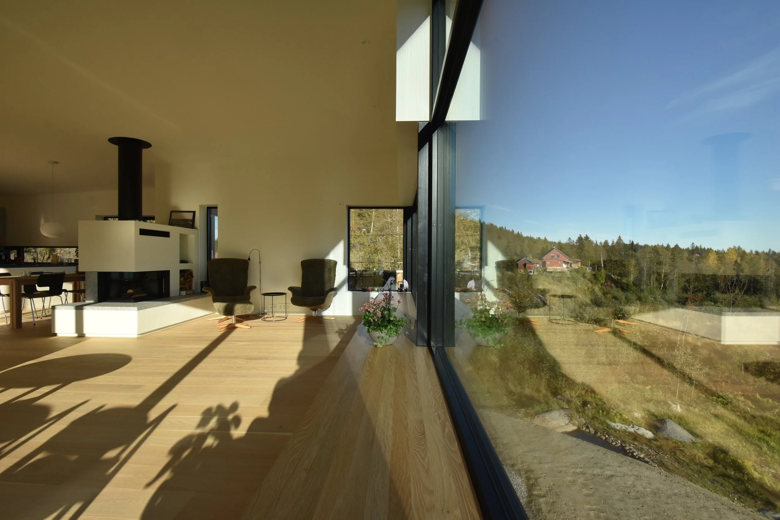 Bildene er tatt rett etter ferdigstillelse. På sikt vil tomten dekkes av naturlig vegetasjon tett omkransende huset.